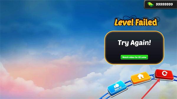 4、關卡失敗后點擊【Try-Again!】或重置按鈕,重新進入關卡,優化操作避免碰撞。