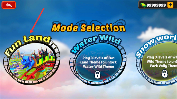 1、在模式選擇界面點擊【Fun-Land】主題(初始解鎖),進入該主題的過山車關卡挑戰。