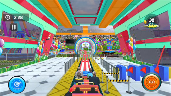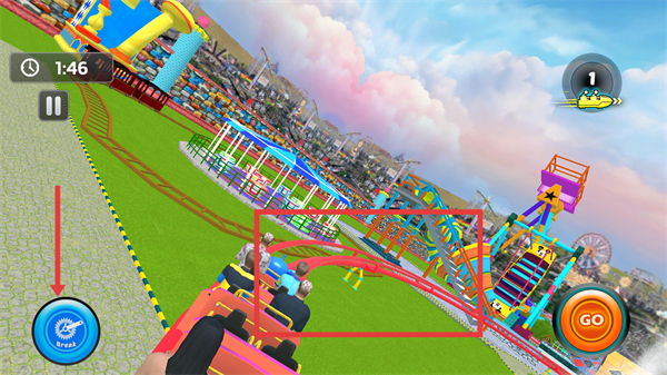 3、行駛中注意軌道的彎道與設施布局,調整【剎車】的觸發時機,避免過山車碰撞到場景中的游樂設施。