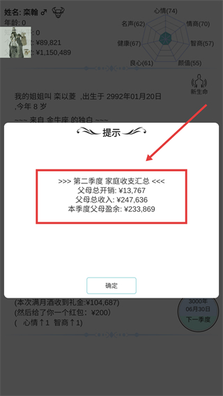 1、關注【第二季度家庭收支匯總】,了解父母【總開銷】【總收入】與【盈余】,為后續人生規劃儲備資金。