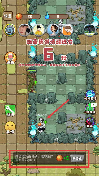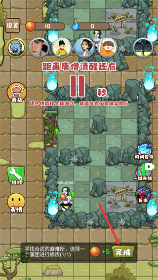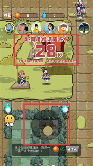 1、進入關卡后,先觀察“距離唐僧清醒還有28秒”的倒計時,快速點擊場景中的洞穴。