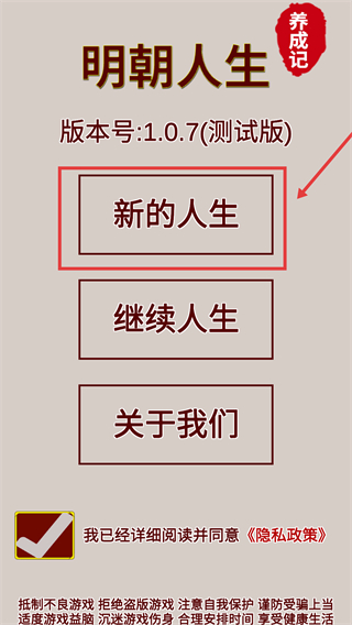 1、進入游戲后點擊【新的人生】,開啟明朝背景的養成之旅,選擇不同屬性角色體驗當官經商等多樣人生。