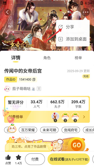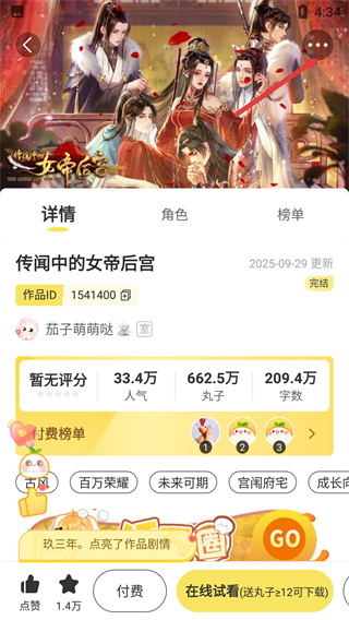 2、在作品詳情頁,點擊右上角的更多操作按鈕,調出功能選項菜單。