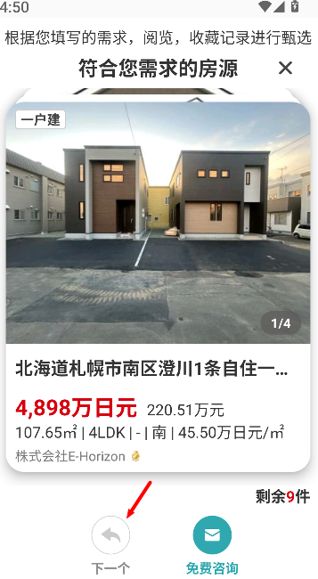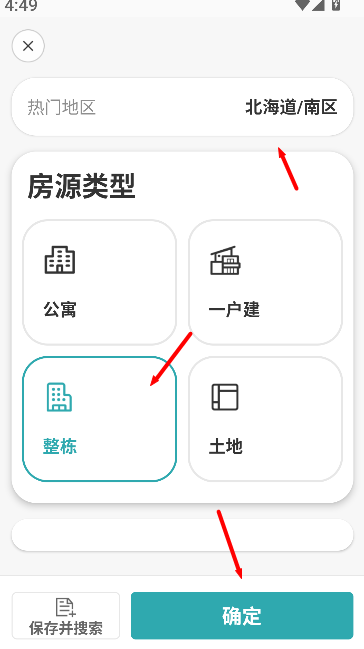 1、進入軟件后,先選擇房源類型及相關信息,確認條件以便篩選合適房源。