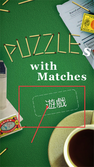 1、進入【PUZZLE-with-Matches】游戲界面,點擊紅色框選的【遊戲】區域,即可進入火柴拼圖的游戲關卡選擇環節。