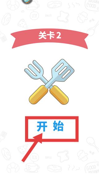 1、看到【關卡2】標識及餐具圖標,點擊紅色框選的【開始】按鈕,即可進入該關卡的食材堆疊挑戰環節。