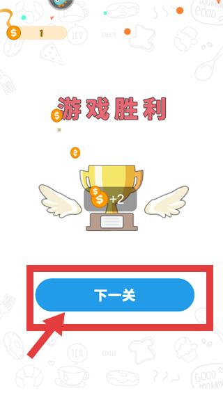 4、達成【游戲勝利】并獲得【$+2】獎勵后,點擊紅色框選的【下一關】按鈕,推進至后續關卡挑戰。