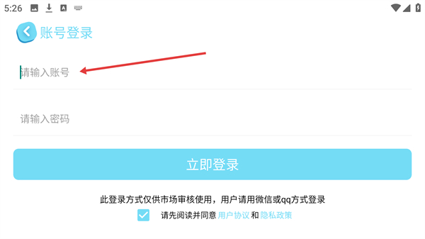 3、進入【賬號登錄】頁面,找到【請輸入賬號】輸入框,填寫對應的賬號內容,同時確認已勾選相關協議選項。