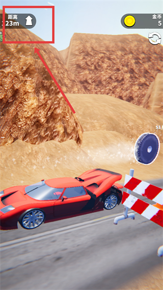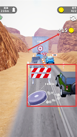 4、遇到障礙或車輛時,操控輪胎避開,同時收集金幣,提升得分。