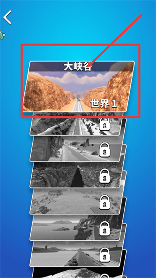 1、選擇“大峽名-世界1”關卡,進入對應的峽谷賽道場景,開啟挑戰。