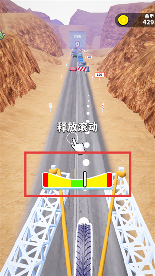 2、在發射界面,觀察下方的力度條,找準時機點擊“釋放滾動”,讓輪胎出發。