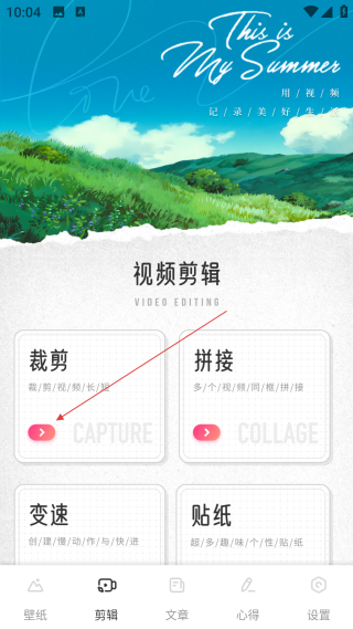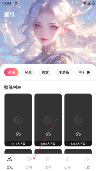 1、在壁紙頁,點擊底部【剪輯】選項,進入視頻剪輯的功能界面。