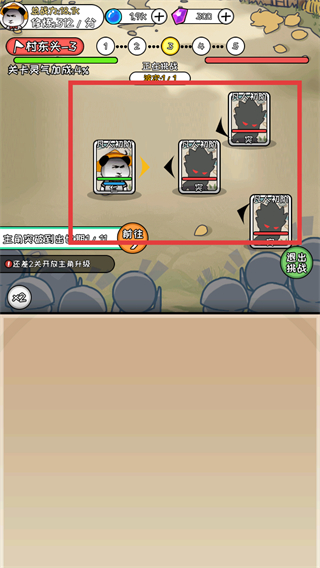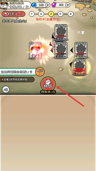 1、在【村東頭-4】處點擊【挑戰】,觸發與敵對陣營角色的對戰,推進的關卡進度。