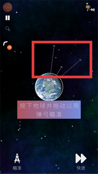 3、進入操作關卡后,依據提示,通過拖動地球的操作方式,調整火箭的發射瞄準方向,推進航天飛行流程。