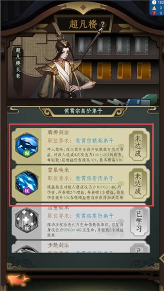 3、在【超凡樓】達成【紫霄高階弟子】要求,學習【腐刺劍法】等劍法,提升自身戰斗技巧。