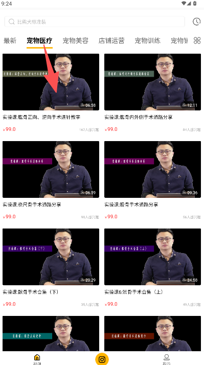 2、進入在課程列表中選擇目標寵物手術課程視頻。