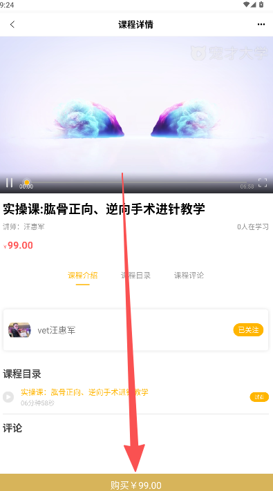3、于課程詳情頁明確標識核心操作與價格按鈕點擊“購買”。