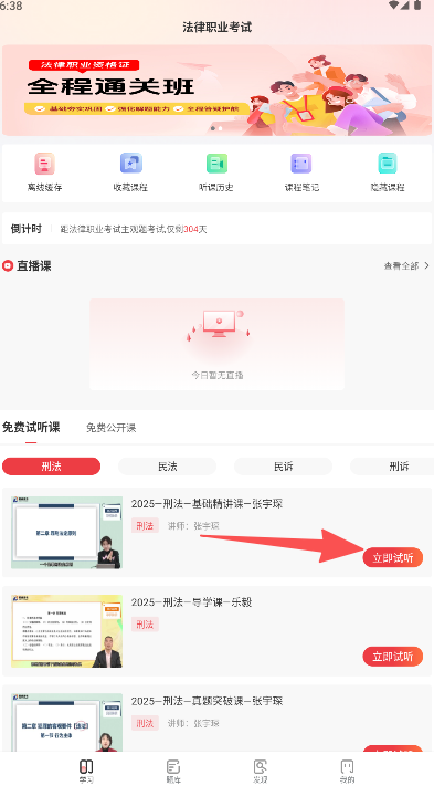 1、在首頁用于指引用戶選擇核心考試類型,例如“法律職業考試”。