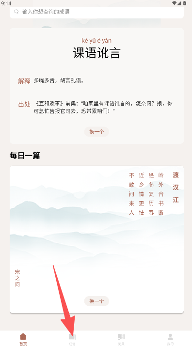1、在首頁指向底部導航欄的“成語”圖標進入查詢功能。