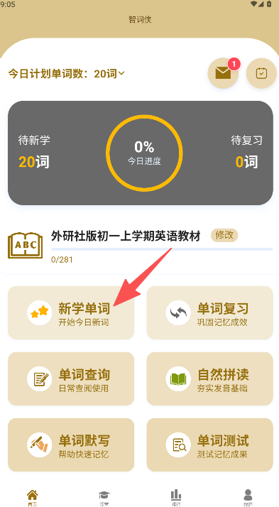 1、在主界面清晰指向“新學(xué)單詞”按鈕。