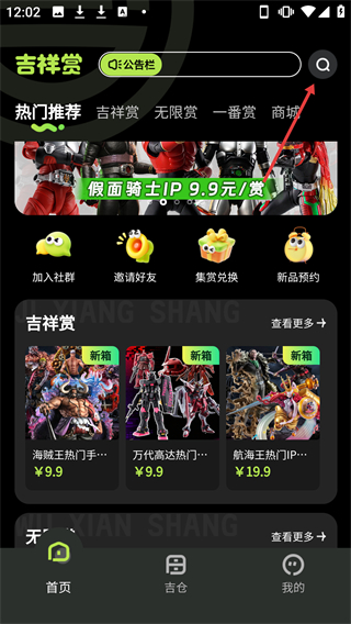 1、在【吉祥賞】應(yīng)用首頁,點(diǎn)擊頂部搜索框進(jìn)行搜索。