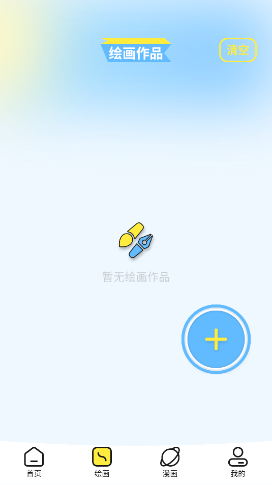 2、繪畫頁面,可以自己繪畫作品,也可以添加圖片來繪畫。