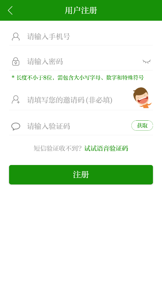 3、在這里輸入手機號,密碼和驗證碼,點擊注冊即可。