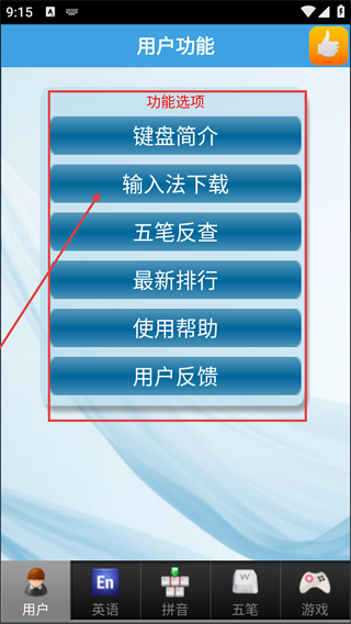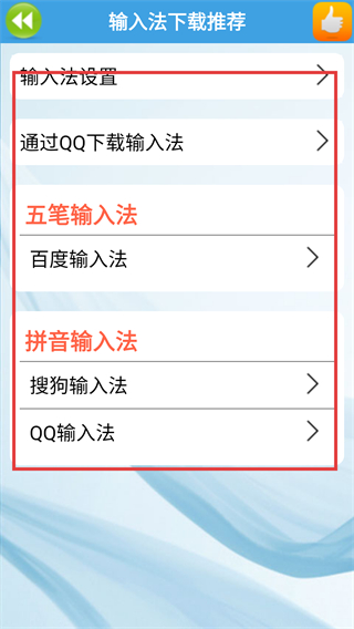 1、在用戶功能頁選擇【輸入法下載】選項(xiàng),就能進(jìn)入輸入法推薦頁面,獲取各類輸入法資源啦。