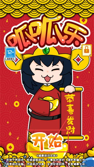 1、進入【呱呱樂】游戲,點擊【開始】按鈕進入玩法,游戲標注【12+-CADPA適齡提示】,需注意適齡范圍。