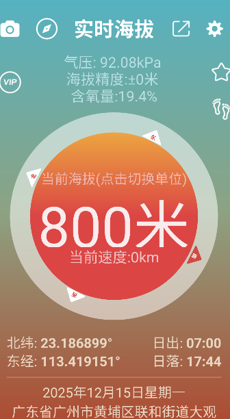 1、實(shí)時(shí)獲取當(dāng)前位置海拔信息,顯示高度數(shù)值與變化情況記錄保存功能。