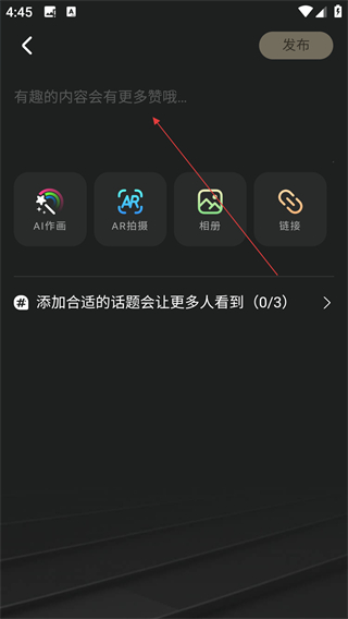 3、在社區(qū)頁點(diǎn)擊編輯圖標(biāo),進(jìn)入內(nèi)容發(fā)布編輯界面。