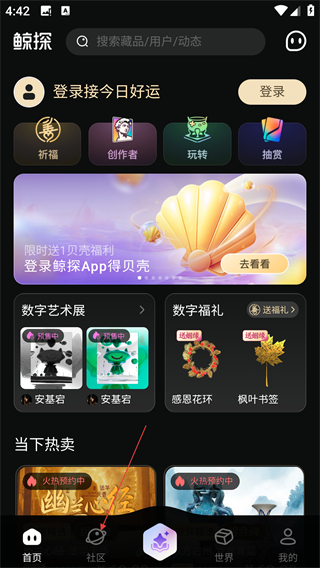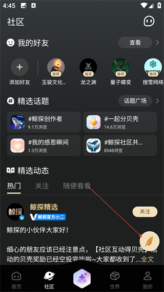 2、在首頁點(diǎn)擊底部【社區(qū)】選項(xiàng),進(jìn)入社區(qū)功能頁面。