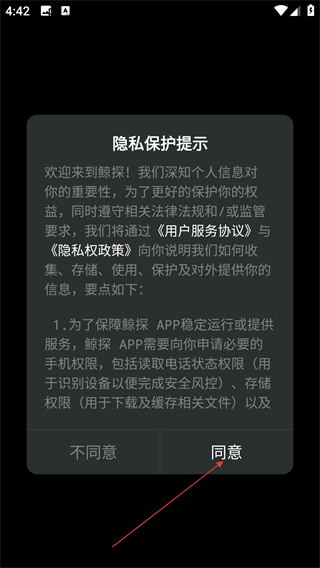 1、閱讀【隱私保護(hù)提示】后,點(diǎn)擊【同意】以進(jìn)入應(yīng)用。