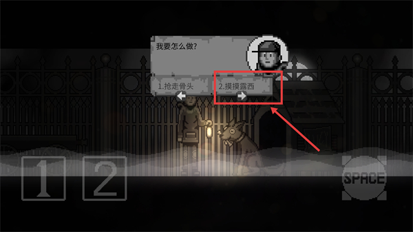4、在對話選項,選擇【2.摸摸東西】,與露西小狗互動,獲取線索或道具。
