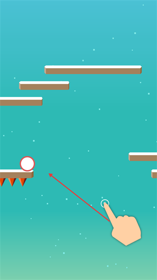 2、游戲內操控【白色圓球】移動,需避開下方【尖刺】障礙,跟隨提示點擊對應區域,使圓球移動至安全-平臺上。