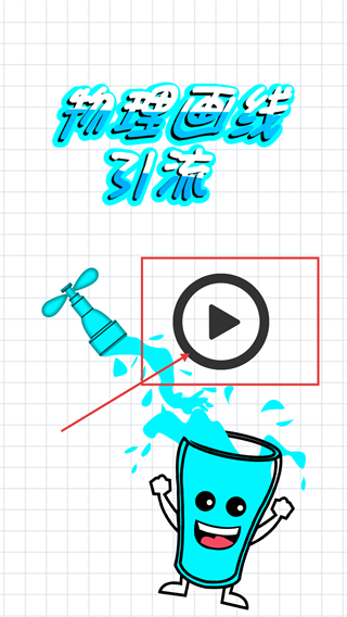 1、進(jìn)入【物理畫(huà)線引流】界面,找到紅色框標(biāo)注的播放按鈕,點(diǎn)擊該按鈕啟動(dòng)游戲,開(kāi)啟畫(huà)線引流的關(guān)卡挑戰(zhàn)流程。