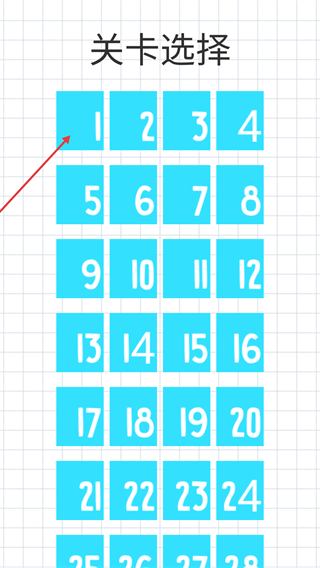 2、進(jìn)入【關(guān)卡選擇】界面,優(yōu)先選擇【1】號(hào)關(guān)卡,此為初始關(guān)卡,能幫助快速熟悉畫(huà)線引流的基礎(chǔ)玩法。