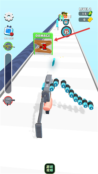1、在Level2關卡中,避開【DAMAGE-2】類減益道具,避免降低槍支傷害。