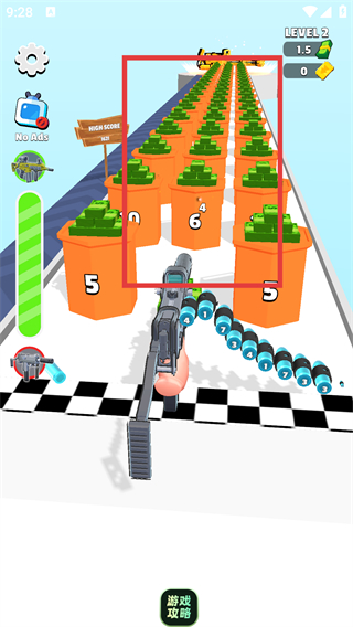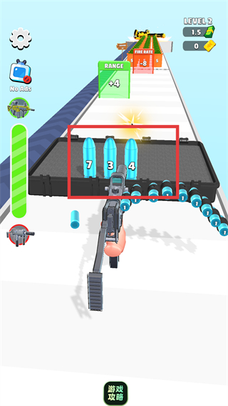 4、關卡末尾射擊帶有數字的【橙色容器】,完成關卡挑戰,積累資源推進子彈進化。