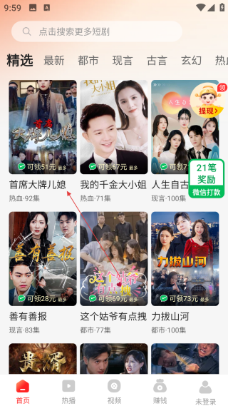 2、在首頁精選列表中,點擊【目標(biāo)短劇】,進(jìn)入該劇播放頁。