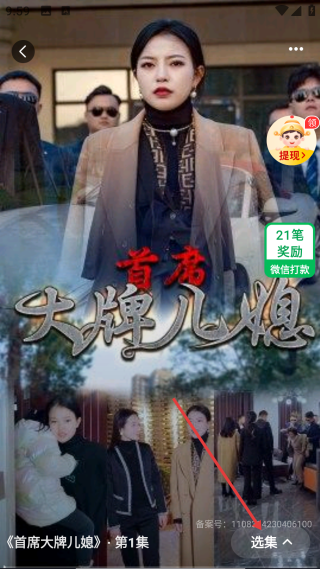 3、進(jìn)入短劇播放界面后,點擊【右下角的選集按鈕】,打開劇集選擇列表。