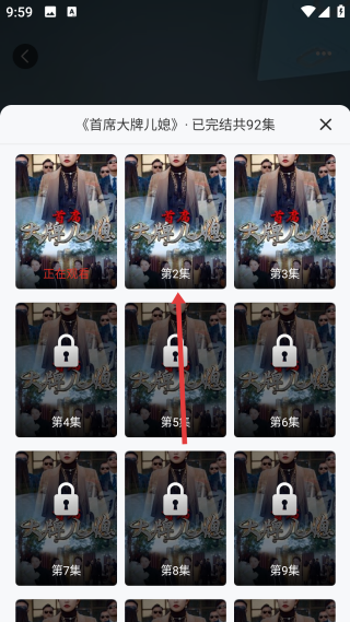 4、在劇集選擇列表中,點擊【對應(yīng)集數(shù)第】,即可切換至該集進(jìn)行觀看。