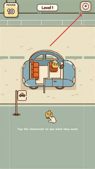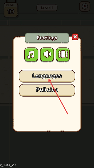 1、在【Level1】關卡界面,點擊右上角【設置】按鈕,可進入設置頁面調整游戲相關選項,同時可查看當前剩余【MOVES-10】步數。