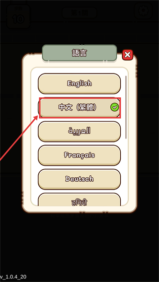 3、在語言選擇界面,選擇【中文(繁體)】選項,即可將游戲界面切換為繁體中文顯示,適配對應語言需求。