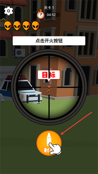 3、瞄準(zhǔn)目標(biāo)后,點(diǎn)擊【射擊】按鈕,即可對鎖定的目標(biāo)發(fā)起攻擊,推進(jìn)關(guān)卡進(jìn)度。