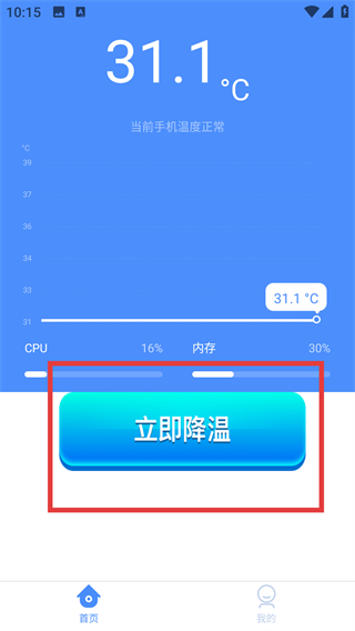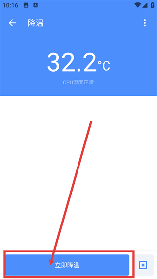1、在溫度監(jiān)測(cè)頁看到當(dāng)前手機(jī)溫度后,點(diǎn)擊【立即降溫】按鈕,就能進(jìn)入降溫功能的操作界面啦。