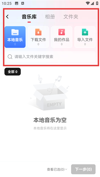 2、在音樂庫頁面可選擇【本地音樂】【下載文件】等分類,找到要轉換格式的音頻文件哦。