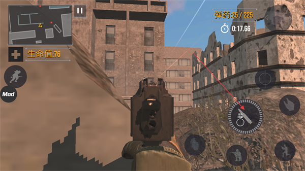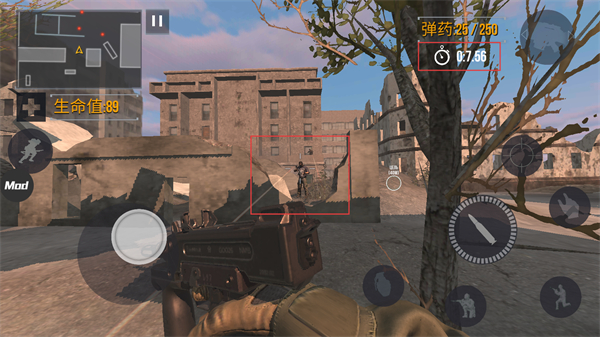 2、戰(zhàn)斗中注意生命值的變化,發(fā)現(xiàn)敵方目標(biāo)后借助掩體瞄準(zhǔn),同時關(guān)注右上角計時進度。