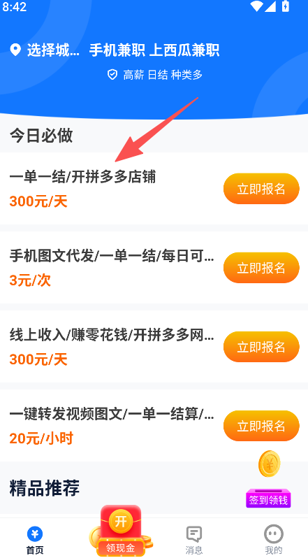1、打開首頁,選擇今日必做中的目標兼職崗位。