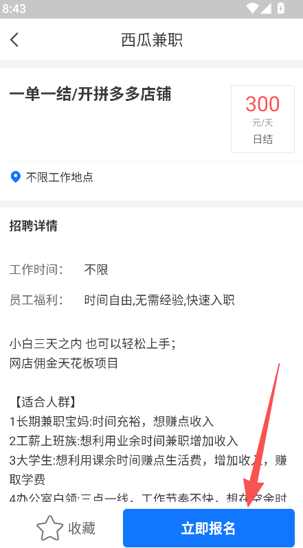 3、點擊立即報名按鈕,參與對應兼職崗位的報名操作。
